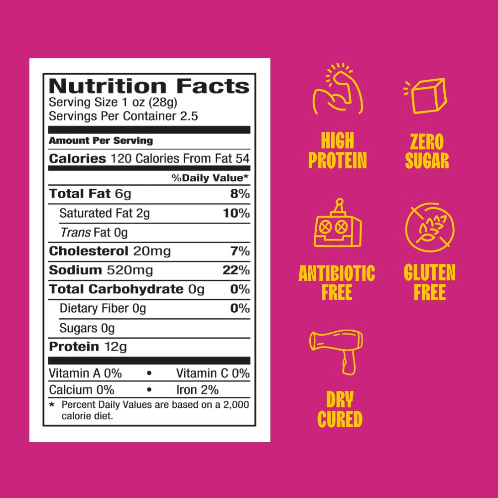 - High-protein, zero-sugar, antibiotic-free pork.